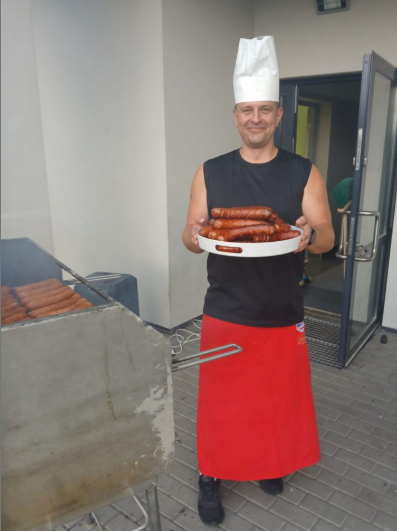 To dzięki naszemu Vice-Prezesowi po emocjonujących rozgrywkach piłkarskich nawet podczas najbrzydszej pogody zawodnicy mogą delektować się przepysznie przygotowana kiełbaską a my możemy ogrzać się w jego blasku, Blasku Mistrza Grillowania